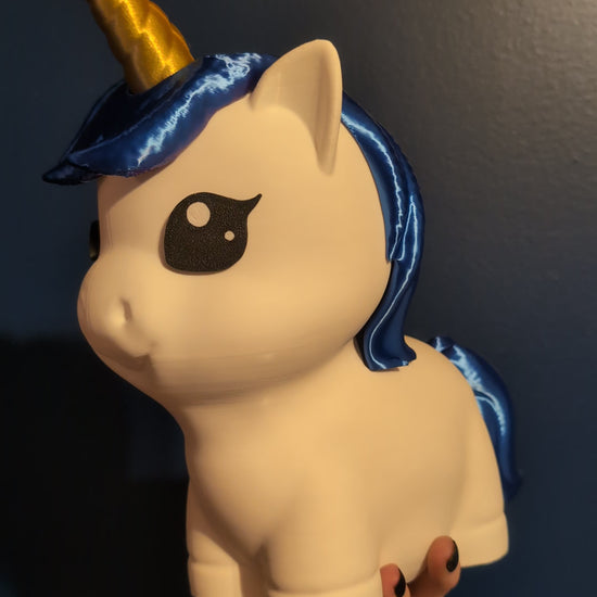 Pam's Purse Peace Fund Unicorn Bank with Blue and Purple Hair and Silver/Gold Horn